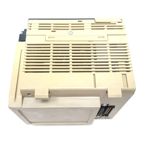 The C200HS-CPU01-E is part of Omron’s SYSMAC C200H family, built for modular PLC control in factory automation environments. It includes 15.2K words of user program memory and features a CMOS-based microprocessor unit with LS-TTL logic. The module supports ladder diagram programming with a wide instruction set—14 basic and 225 special instructions—allowing for flexible and powerful control strategies. It operates from a universal AC power supply (100–120/200–240 VAC) and features built-in output capabilities, including a 24 VDC signal output (0.3 A) and run-state output at 250 VAC/24 VDC 2 A. Additional functions include an integrated clock/calendar and error history tracking for diagnostics.