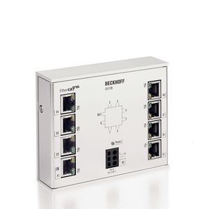 The BECKHOFF CU1128 is a versatile EtherCAT infrastructure component designed for coupling EtherCAT junctions within industrial automation systems. It supports data transfer over Ethernet/EtherCAT cables (min. Cat.5), providing reliable connectivity through its 8 RJ45 bus interfaces.