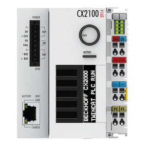 The CX2100-0914 is part of Beckhoff’s CX2000 series of modular power supply units designed for high-performance Embedded PC systems. This model provides a robust 100 W output and supports external UPS battery packs for uninterruptible power supply functionality. It automatically detects and operates with either E-bus or K-bus I/O connections, ensuring seamless integration with Beckhoff EtherCAT and Bus Terminals. The built-in FSTN display allows users to view internal system values, diagnostics, and user-defined parameters directly on the module. With its fanless, passively cooled design, the CX2100-0914 maintains reliable operation across a wide temperature range, making it ideal for industrial automation systems requiring continuous and stable power delivery.