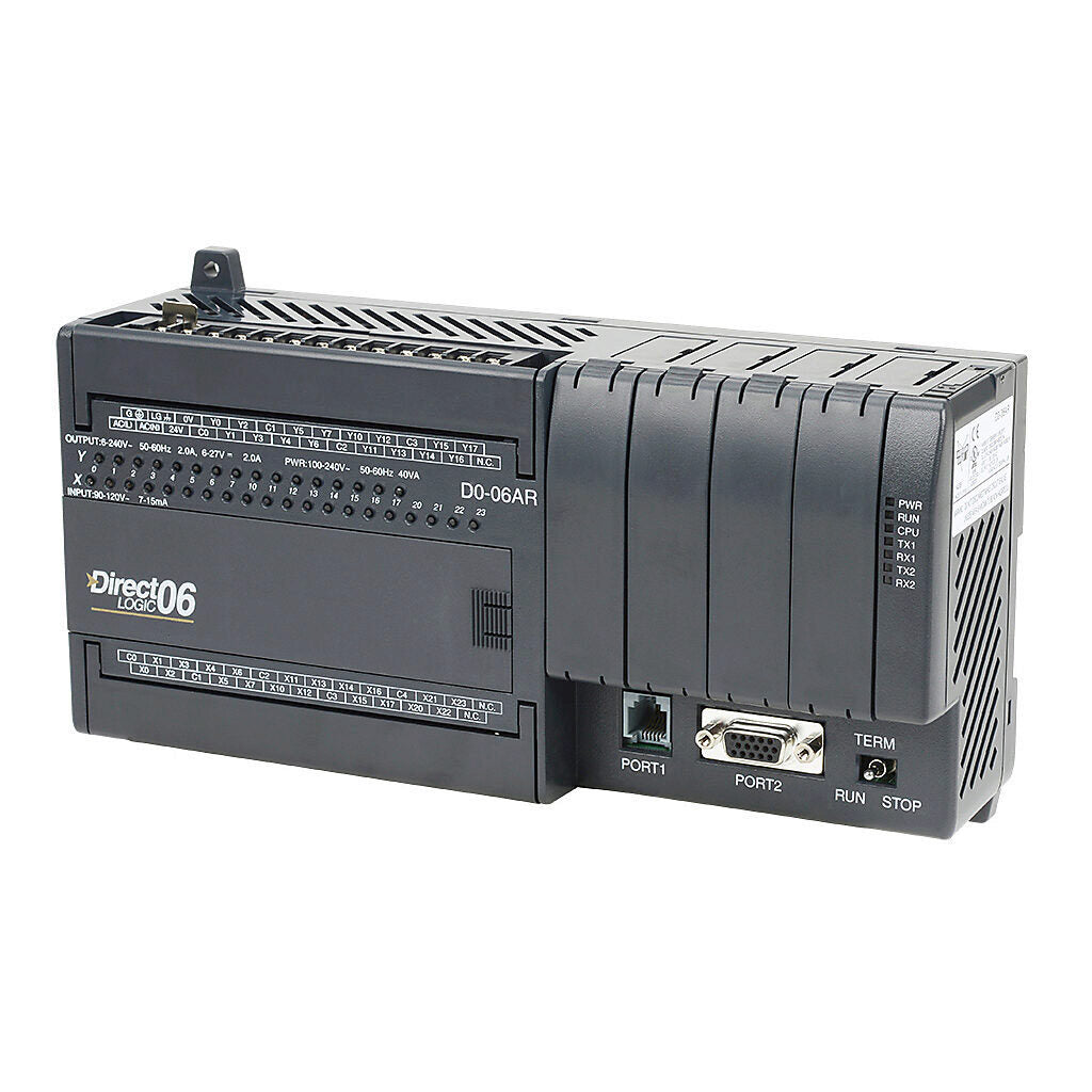 The Automation Direct D0-06AR is a comprehensive solution for industrial automation, providing a blend of high memory capacity, versatile input and output configurations, and advanced control capabilities. Its robust design and extensive features ensure that it can meet the demands of modern industrial environments, delivering reliable and efficient performance. Whether used for new installations or upgrading existing systems, the D0-06AR from the DL06 series represents a powerful tool for enhancing industrial automation and control.