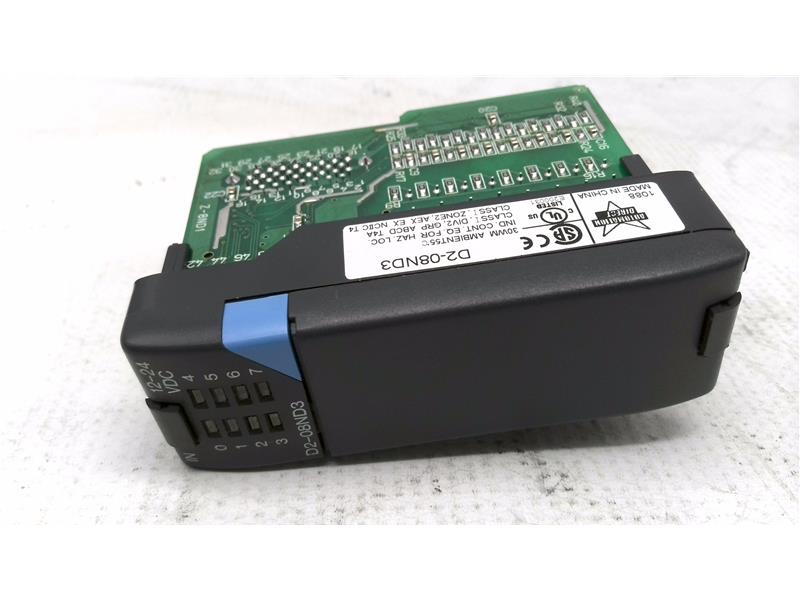 In terms of physical design, the D2-08ND3 is built to withstand the rigors of industrial environments. Its construction is robust, ensuring long-term durability and resistance to the typical environmental challenges found in industrial settings, such as vibration, temperature fluctuations, and electrical noise. The module’s design also takes into account the need for efficient space utilization, with its compact form factor allowing it to be easily installed in systems where space constraints are a consideration.