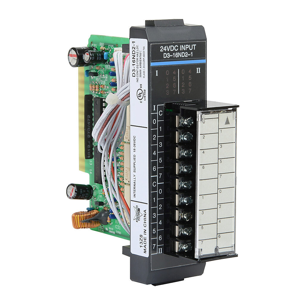 In summary, the Automation Direct D3-16ND2-1 is a high-quality 24VDC input module designed to expand the input capacity of DirectLOGIC DL305 PLC systems. With its 16 input points, sourcing input type, and removable terminal block, this module offers a reliable and flexible solution for monitoring discrete signals in various industrial automation applications. Its lightweight design, compatibility with standard industrial voltages, and efficient wiring configuration make it a valuable component for optimizing control system performance and ensuring accurate, real-time monitoring of industrial processes.