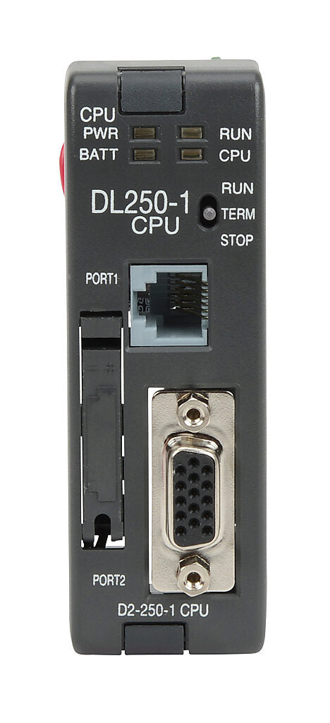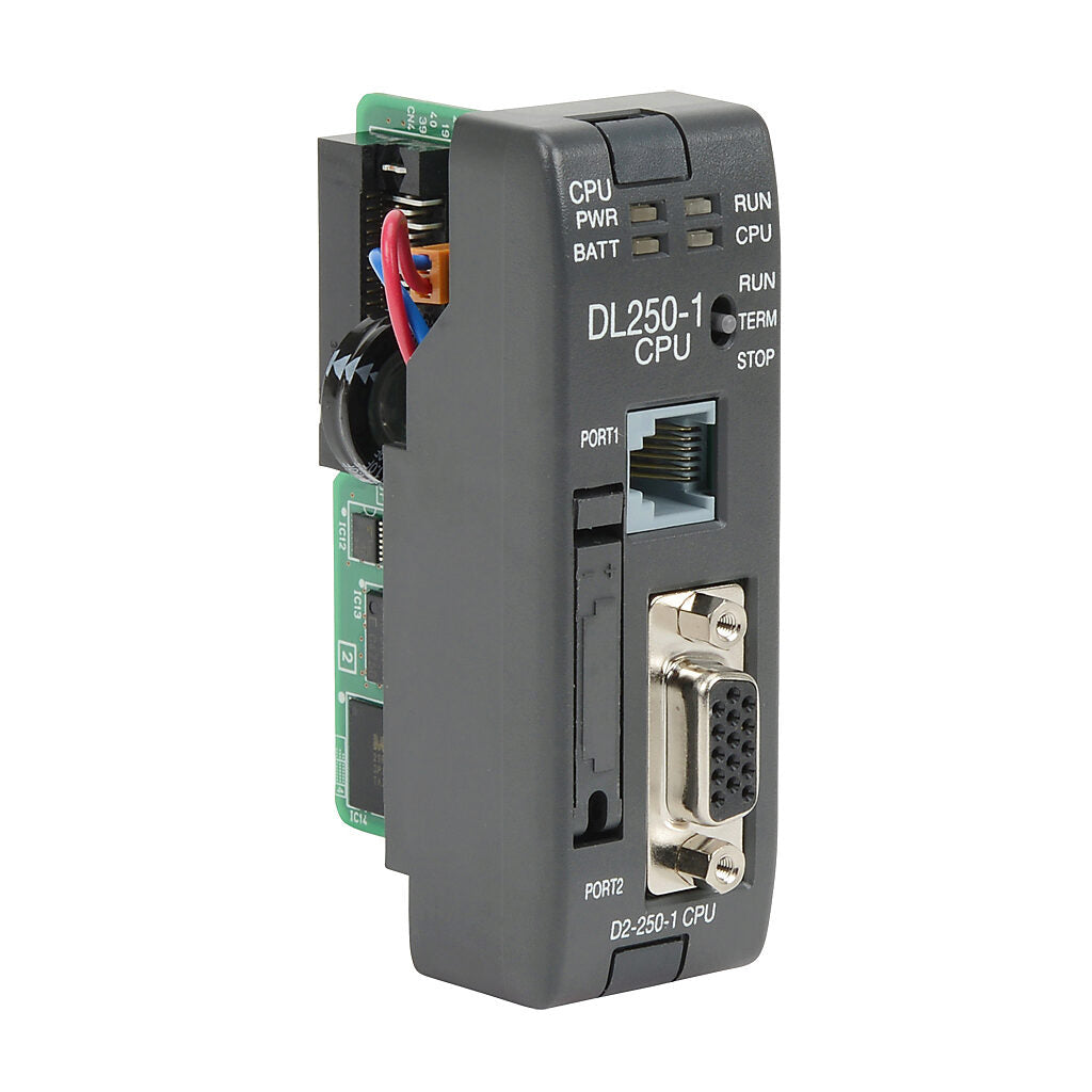 The DL250-1 is a compact and reliable CPU module from AutomationDirect designed for the DL205 series PLCs, providing processing power for a variety of industrial automation applications. It supports flexible I/O configurations and communication options, making it ideal for controlling and managing complex systems.