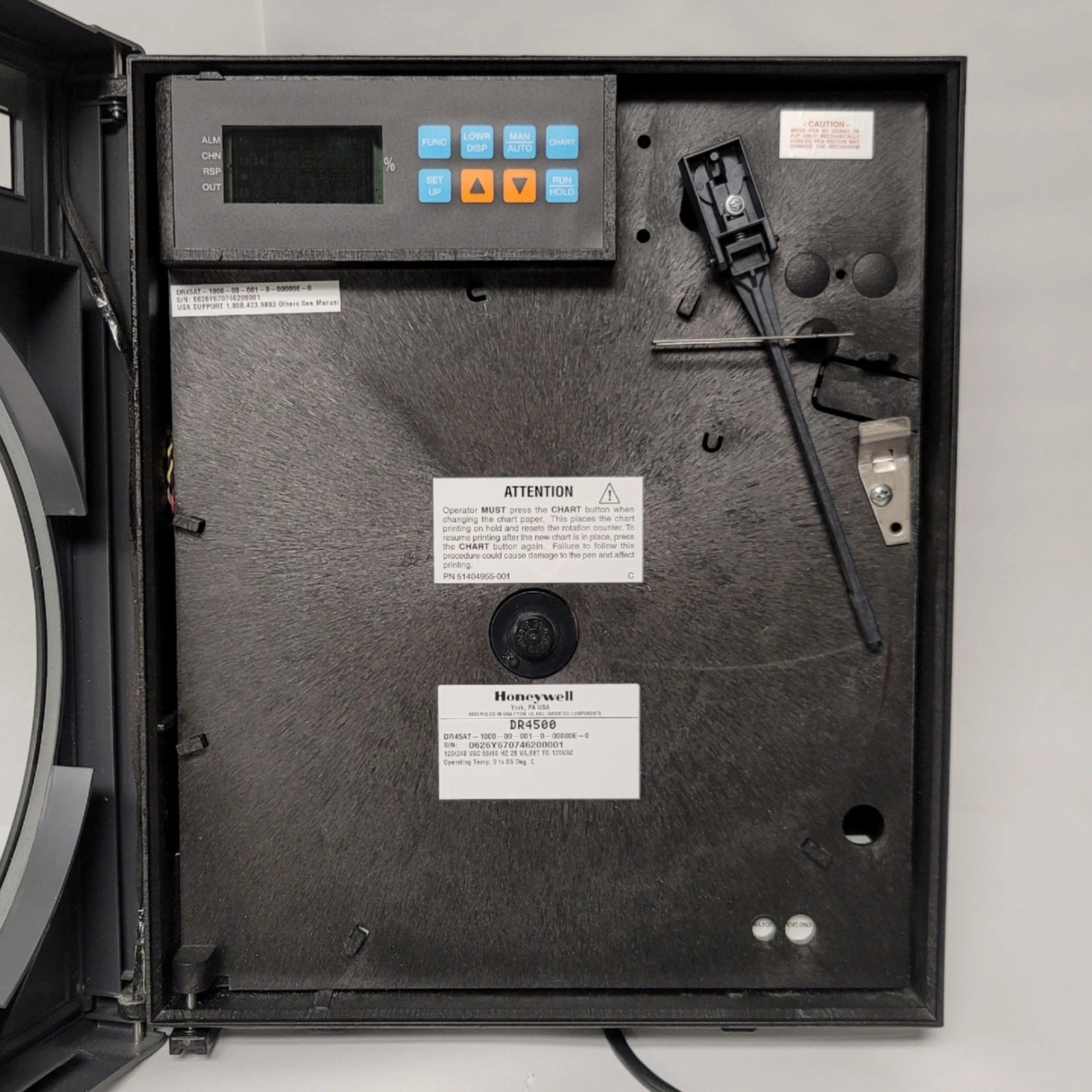 The Honeywell DR45AT-1000-00-001-0-00000E-0 is a Trueline series circular chart recorder built for reliable analog data recording in industrial settings. With a 12-inch chart diameter and support for a wide range of inputs, it provides high-accuracy measurement and long-term data tracking.