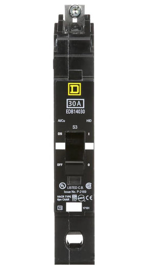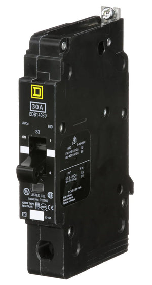 It features a single-pole (1P) configuration and is intended for single-phase (1PH) systems. With an interrupting capacity (AIC) of 18kA at 480V, the EDB14030 ensures robust protection against overcurrents and short circuits, providing enhanced safety and reliability.