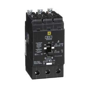 The EDB34045 is a three-pole mini circuit breaker from Square D's E-Frame series, specifically designed for use in Square D NF Panelboards. Known for its reliability and effectiveness, E-Frame breakers offer robust features tailored for lighting panelboard applications, providing superior overload and short circuit protection.