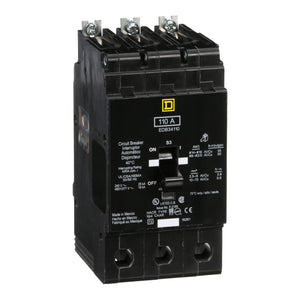EDB34110, Schneider Electric circuit breaker molded case EDB Series, type EDB, 3PH, 3P, 1V, 110A, 18kA@480V, Bolt-On, complete with LI - Long-Time and Instantaneous trip functions, Thermal Magnetic.