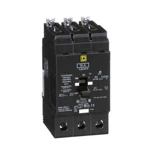 Operating at a voltage of 480V and an amperage of 15A, the EJB34015 is suitable for managing lower power loads in three-phase systems. Its three-pole configuration ensures balanced and effective power distribution and circuit protection across all phases.