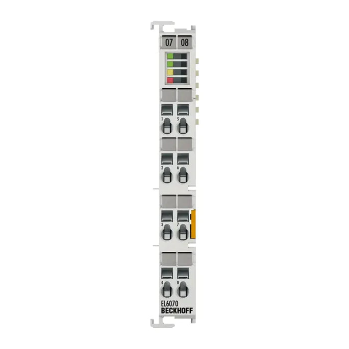The Beckhoff EL6070 is an EtherCAT terminal with a license key function, designed to enable software licensing directly within an EtherCAT I/O system. It provides secure license storage for Beckhoff TwinCAT software features.
