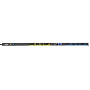 The Eaton EMA107-10 is a vertical 0U managed rack-mountable power distribution unit (PDU) engineered for data centers and enterprise IT environments that demand advanced power control and energy monitoring. Operating at 200–240V single-phase with a 24A input capacity, it delivers up to 5.76 kW of power through 24 outlets, including 20 IEC C13 and 4 IEC C19 receptacles. The unit features outlet-level switching and metering with billing-grade accuracy, allowing for remote control and detailed power usage analytics. With a compact form factor, integrated LCD display, and multiple network interface options, the EMA107-10 ensures reliable and scalable power management in high-density applications.