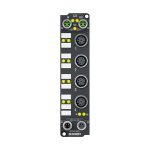 The EP7342-0002 belongs to Beckhoff’s EtherCAT Box series, designed for decentralized motion control directly at the machine. It allows direct operation of two DC motors with either speed or position control, making it suitable for compact motion systems. Through integrated incremental encoder support, the device can create simple servo axes for precise positioning. The module uses 32 kHz PWM control for smooth motion and reduced motor noise. With its short-circuit protection, distributed clock synchronization, and diagnostic LEDs, the EP7342-0002 provides robust, real-time motor control in harsh industrial environments. Its IP67-rated housing enables installation close to the motor or actuator, minimizing cabling and increasing system reliability.