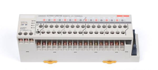 The Omron G700-UID16 is a compact 16-point remote I/O terminal designed for efficient control system integration. Supporting 24 VDC operation and DIN rail mounting, it offers streamlined installation and flexible expansion capabilities.