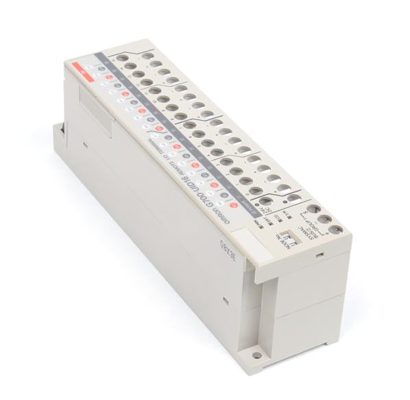 The G700-UID16 is part of Omron’s G700-U series of remote I/O terminals, tailored for distributed control environments requiring scalable and space-efficient configurations. This terminal supports 16 I/O points and can be expanded up to 32 points by connecting directly to a G700-T I/O terminal. The design allows for mixed input/output configurations, offering enhanced versatility across industrial applications. Its form factor minimizes panel space usage and is optimized for DIN rail mounting, making installation fast and convenient. The G700-UID16 also features a replaceable fuse for convenient maintenance and integrated power terminals to simplify I/O device wiring.
