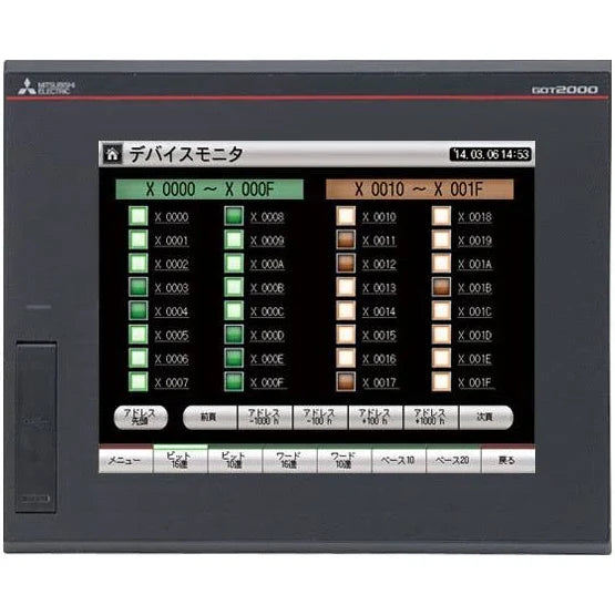 The Mitsubishi GT2508-VTBD Color Touchscreen boasts a display dimension of 170.9 (W) x 128.2 (H) mm or 6.73 (W) x 5.05 (H) inches, facilitating an expansive and lucid interface for information presentation. Its display capacity extends to a maximum of 40 characters by 30 lines employing a 16-dot standard font or 53 characters by 40 lines utilizing a 12-dot standard font, with provision for two-byte characters. Renderable in 65536 colors, the display ensures vivid and intricate visual representation.