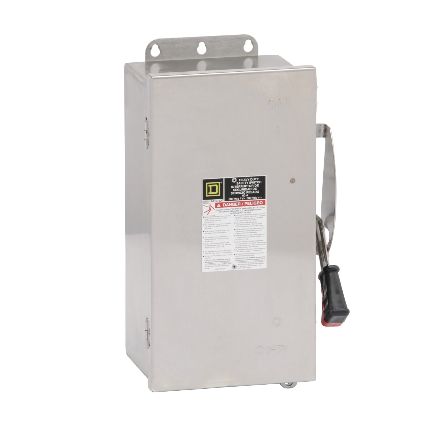 The Square D H362DS is a 3 Pole safety switch with a current rating of 60 Amps and a voltage rating of 600VAC, 600VDC. It has an interrupting rating of 200kA@600V. The H362DS has a surface mounting type and it is used for residential, commercial, industrial applications.