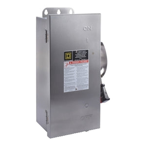 This safety switch features a 3-pole configuration, which allows it to disconnect all three phases of a three-phase electrical system simultaneously. Three-phase power systems are commonly used in industrial and commercial settings because they offer more efficient power distribution and are capable of supporting higher power loads. The 3-pole design of the H362NDS ensures that all three phases are safely and securely isolated when the switch is in the off position, preventing any residual current from passing through the system. This feature is critical for ensuring the safety of personnel performing maintenance or repairs on the system, as well as for protecting equipment from electrical damage during service.