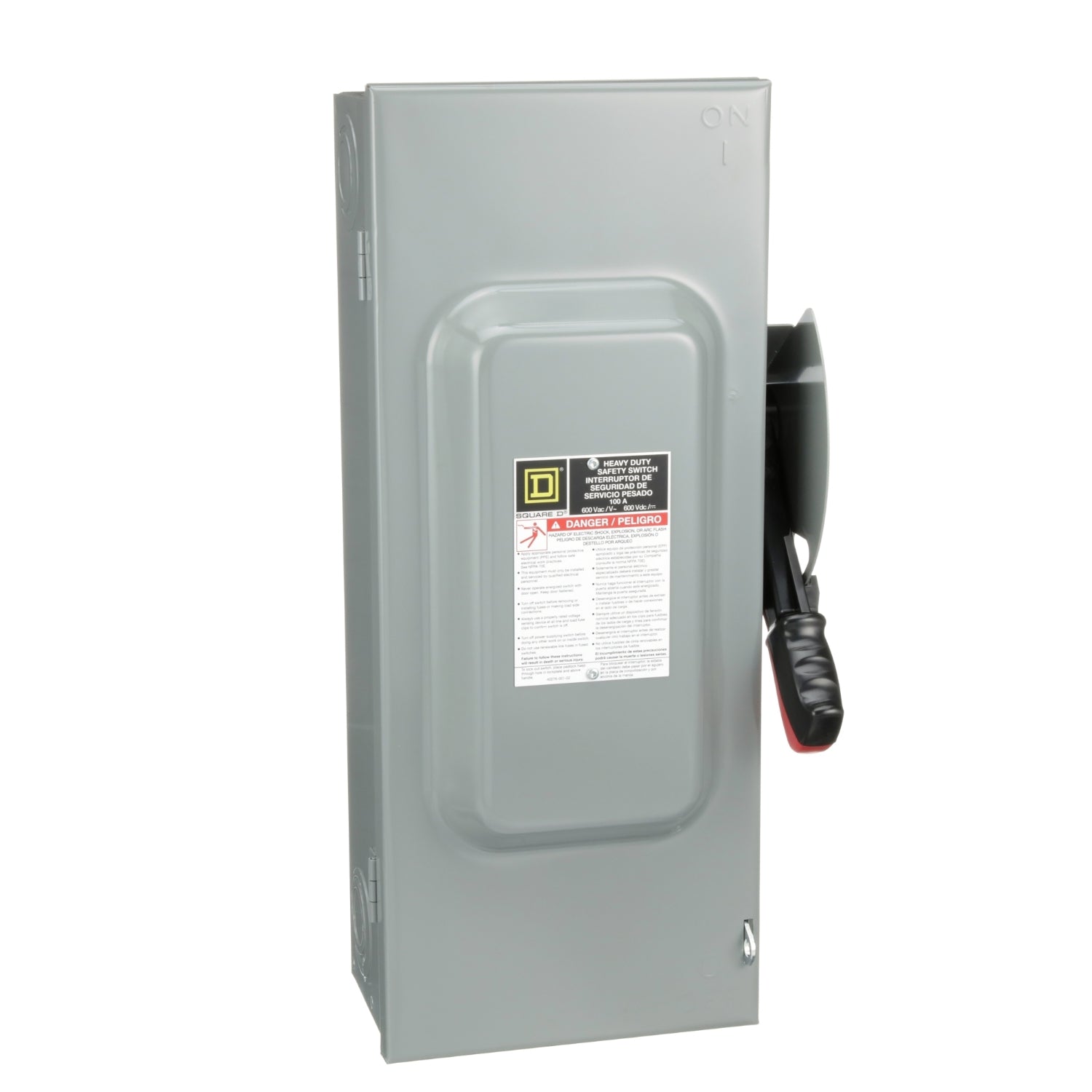 The Square D™ by Schneider Electric Heavy Duty Safety Switch, model H363, is engineered for robustness and reliability in demanding environments. This fusible safety switch exceeds NEMA KS-1 and UL98 standards for mechanical endurance. Featuring a quick-make, quick-break operating mechanism and a dual cover interlock, it ensures safe operation. The switch is designed with a color-coded indicator handle for clear visual indication. Rated for 100A, it holds a UL listing and is housed in a NEMA 1 steel enclosure suitable for indoor applications.