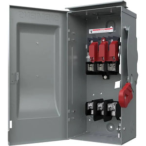 This disconnect switch features a two-pole configuration, ensuring effective isolation of electrical circuits. It is designed to accommodate a three-wire setup, enhancing versatility and compatibility with different electrical systems. The HF221NR is fusible, providing additional protection by allowing the integration of fuses to safeguard against overcurrent conditions.