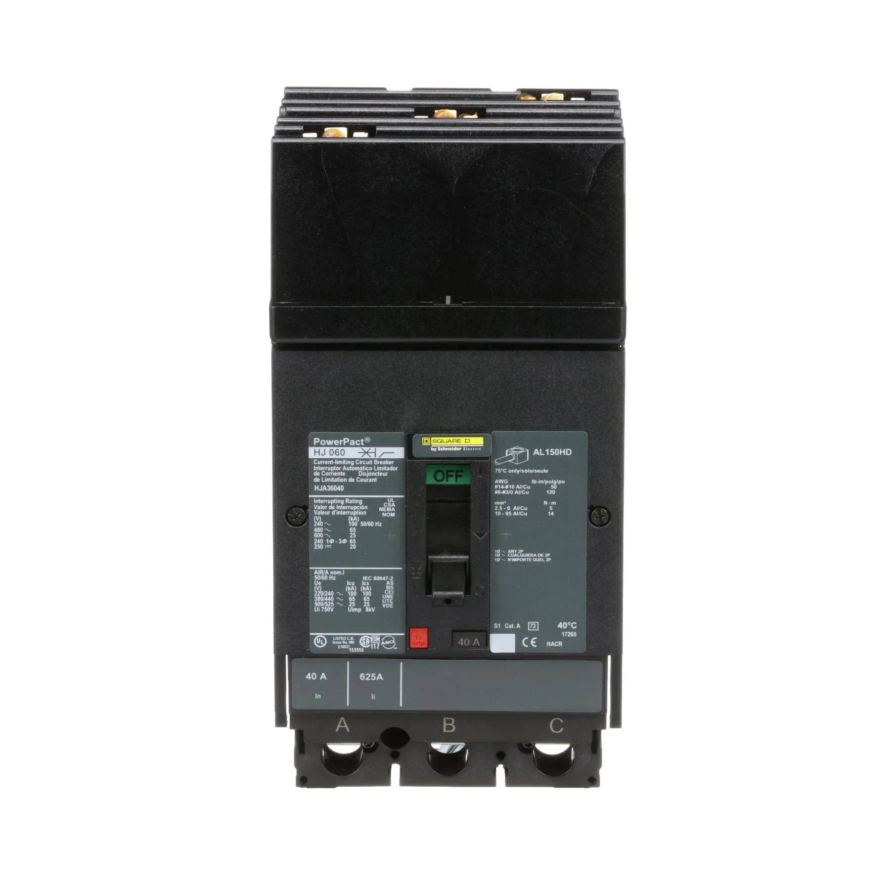 The HJA36040 PowerPacT H-Frame circuit breaker by Schneider Electric provides essential protection for electrical systems against overloads and short circuits. Featuring a thermal magnetic trip unit, it offers a substantial breaking capacity of 25kA at 600VAC, ensuring reliable circuit protection in industrial environments.