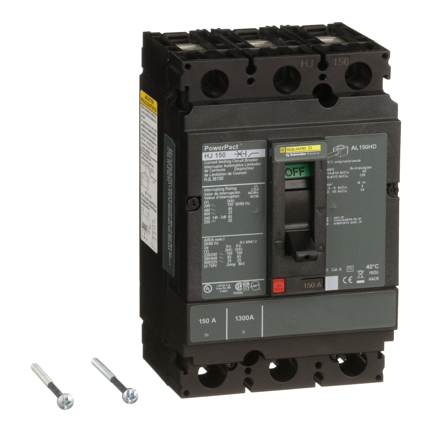Featuring a three-pole (3P) configuration for three-phase (3PH) systems, the HJL36150 offers comprehensive LI (Long-Time and Instantaneous) trip functions, enhancing the safety and efficiency of your electrical setup. It boasts an impressive interrupting capacity (AIC) of 65kA at 480V, making it suitable for demanding applications.