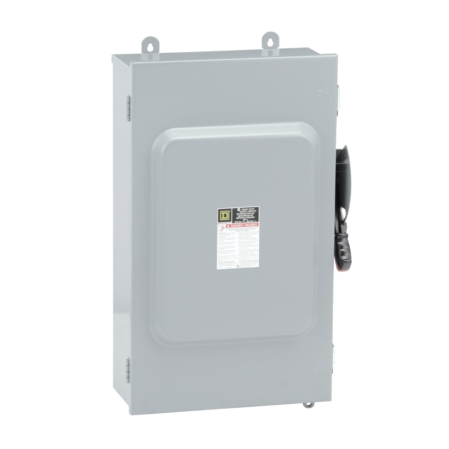 The switch operates with a single throw mechanism, providing straightforward and secure operation. It is designed to accommodate three wires, allowing for flexible and efficient wiring configurations. The HU364AWK is equipped with a NEMA 3R/12 enclosure, offering weatherproof protection suitable for both indoor and outdoor installations. This enclosure provides robust protection against dust, dirt, and water, ensuring the switch's longevity and reliable performance in harsh environments.