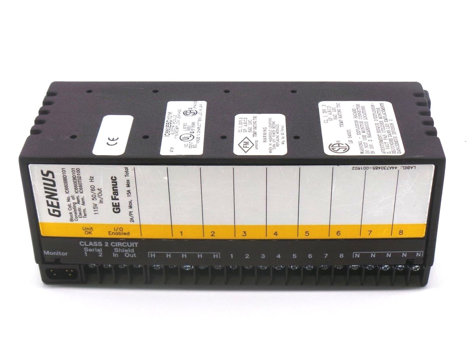 The GE Fanuc IC660EBD101K is an input/output PLC module designed for use with Genius I/O blocks. It operates with both AC and DC block power, providing reliable signal interfacing for automation control systems.