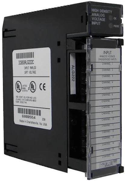 The IC693ALG222 is a 16-Channel Analog Voltage Input module designed for the GE Fanuc 90-30 Series PLC. This module offers 16 single-ended or 8 differential input channels, accommodating various input configurations. It provides easy-to-use configuration software supporting two input ranges: -10 to +10 volts and 0 to 10 volts, allowing flexibility in signal processing.