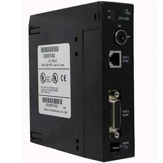 The IC693CPU363 is manufactured by GE Fanuc. This module is a controller from the Series 90-30 of Programmable Logic Controllers (PLC). This controller is responsible for executing the user program stored within its user memory as well as managed communication exchanges between compatible devices such as programming workstations, Human Machine Interface (HMI), Supervisory Control and Data Acquisition (SCADA), Databases and other 3rd party hardware and devices.