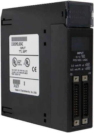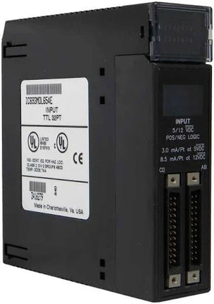 The IC693MDL654 is a 5/12 volt DC (TTL) Positive/Negative Logic Input module designed for the Series 90-30 Programmable Logic Controller (PLC) by GE Fanuc. It features 32 discrete TTL voltage threshold input points organized into four groups (A1 - A8, B1 - B8, C1 - C8, and D1 - D8). These inputs accommodate both positive and negative logic configurations up to 15V.
