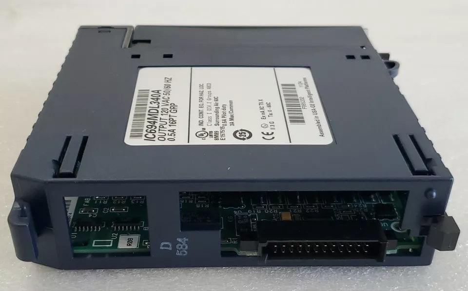 The IC694MDL340A is a GE Fanuc output module that operates at 120 VAC, offering 16 discrete output points to control various industrial devices. Each output is capable of handling up to 0.5 amps, making it suitable for low-power applications. Although discontinued by the manufacturer, this module remains a reliable solution for automating tasks within control systems that require efficient switching of electrical loads. The module is designed to provide stable and effective output control, ensuring smooth system operation in a wide range of industrial environments.