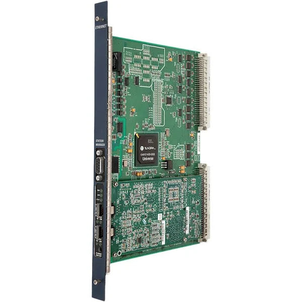 The IC698ETM001, manufactured by GE Fanuc in collaboration with Emerson Automation, represents a PACSystem RX7i Ethernet interface module designed for industrial applications. This module offers robust Ethernet functionality tailored for high-performance operations. Equipped with two Ethernet communication ports, it supports communication rates of 10/100 Mbps and incorporates autosensing capabilities to adapt to network conditions seamlessly. Additionally, the module includes one serial communication port designated as a station manager port.