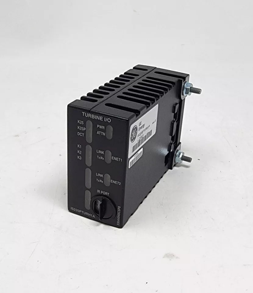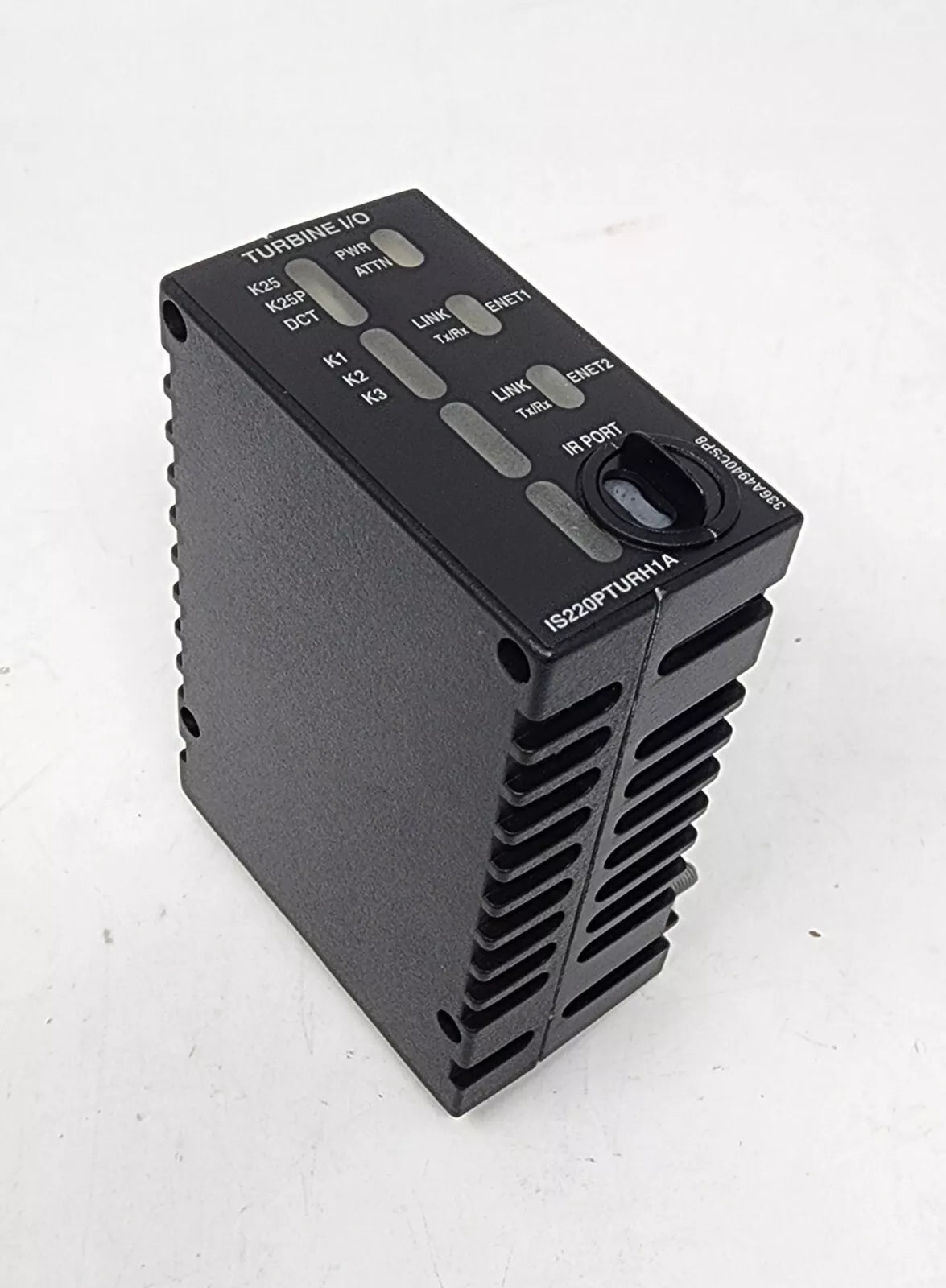 Encased in a ventilated black housing, the IS220PTURH1A features multiple LED indicators and an IR port, though the latter remains unused. Internally, it comprises a processor board, a dedicated turbine control board, and an analog acquisition auxiliary board. Installation involves mounting onto the TTURH1C terminal board.