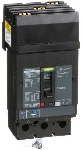 JJA36200 | Schneider Electric Circuit Breaker, PowerPacT J, 200A, 3 Pole, 600VAC, 25kA, I-Line, Thermal Magnetic, 80%, ABC
