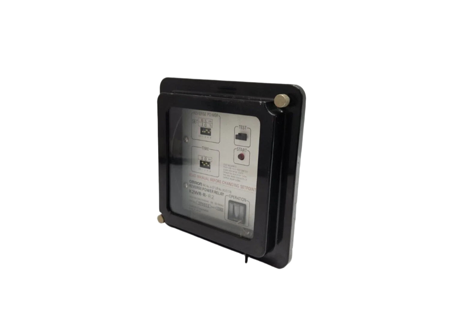 The Omron K2WR-R-R2 is a static-type reverse power relay designed to protect generators—particularly in marine and industrial applications—from reverse power flow. It detects reverse power conditions and disconnects the generator to prevent potential damage.