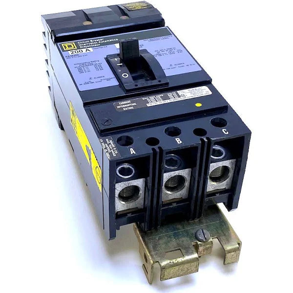 The KA36200 is a Square D thermal magnetic molded case circuit breaker designed for industrial applications. It belongs to the I-Line product series and is classified under Type KA. This circuit breaker is configured with three poles (3P) to accommodate three-phase electrical systems. It possesses a current rating of 200A and operates within a voltage range of 600V. The KA36200 has an interrupting capacity of 25kA at 480V, meeting standard industry requirements for interrupting capability. Operating temperatures for this circuit breaker are rated up to 40°C.