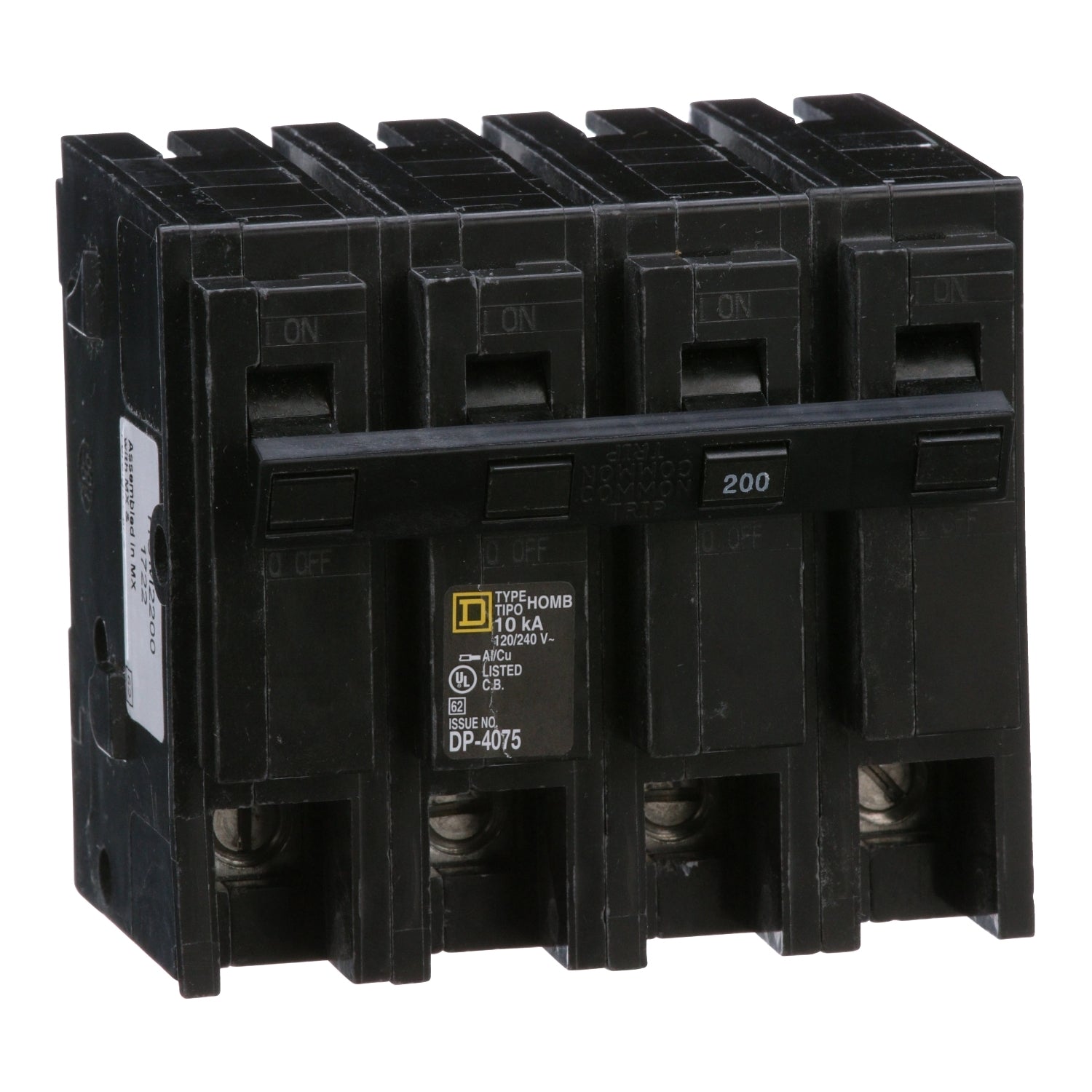 Featuring a 2-pole configuration and plug-in mounting, the HOM2200 is rated at 200A for operation at 120/240 VAC. With a breaking capacity of 10 kA, HOM circuit breakers offer robust protection against short circuits.