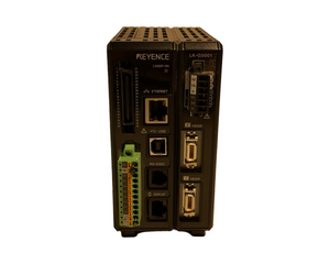 The Keyence LK-G5001 is a high-speed, high-precision laser displacement controller designed for the LK-G Series of laser sensors. It supports up to two directly connected sensor heads and can expand to twelve using head expansion units. This controller delivers submicron measurement precision with advanced analog and digital output capabilities, ideal for industrial applications requiring fine displacement, thickness, or position measurement.