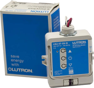 The Lutron LMJ-5T-DV-B RF Dimming Module is a wireless 0–10 V dimming control unit designed for integration with Lutron RadioRA 2 and HomeWorks systems. Operating on 120–277 VAC, it provides reliable, flicker-free dimming of compatible LED and fluorescent fixtures using Clear Connect RF technology for secure and precise wireless communication.