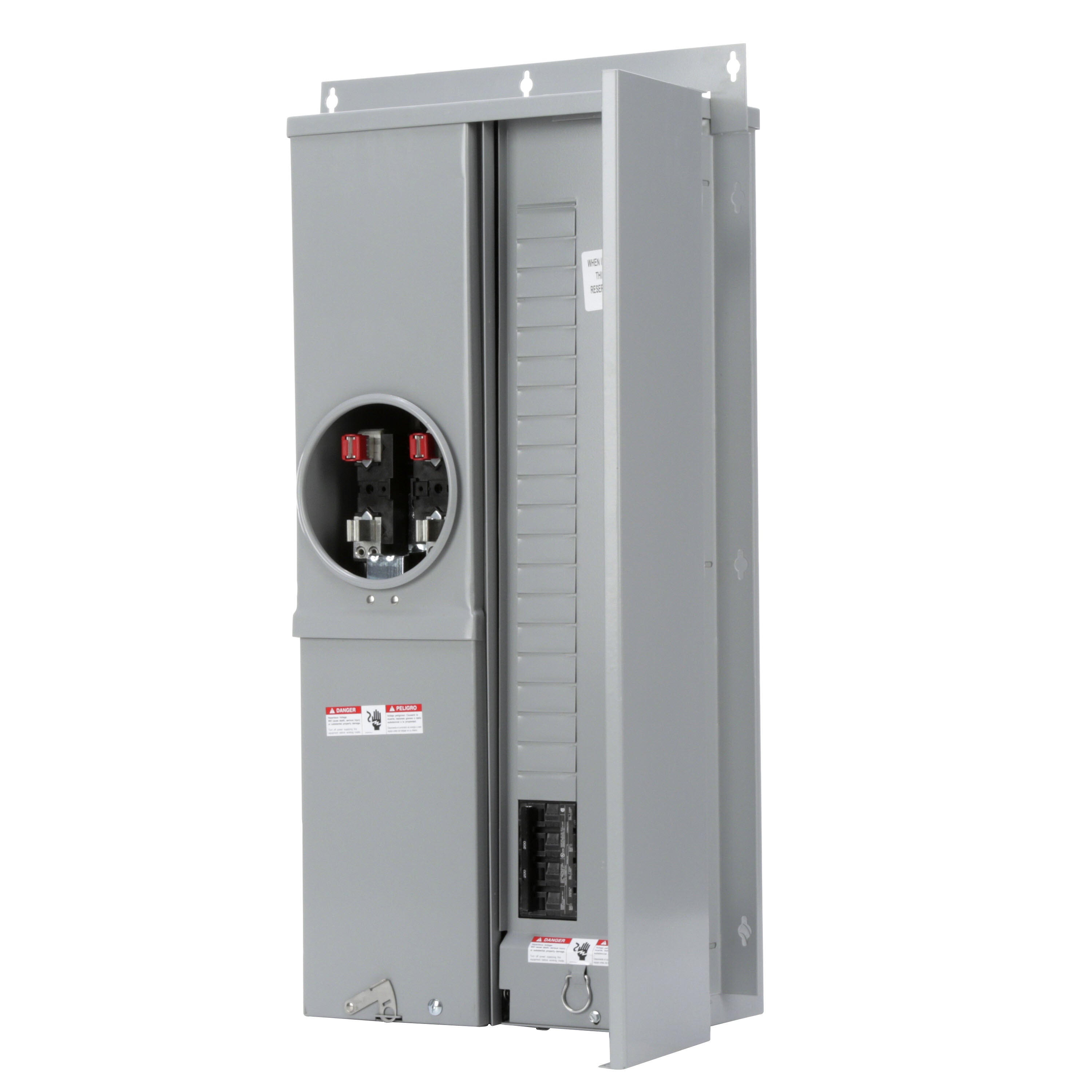 The Siemens MC2040B1200EFC is a meter load center combination designed for residential and light commercial applications. It integrates a 200-amp main breaker with a 20-space, 40-circuit capacity, allowing for efficient distribution of electrical power.