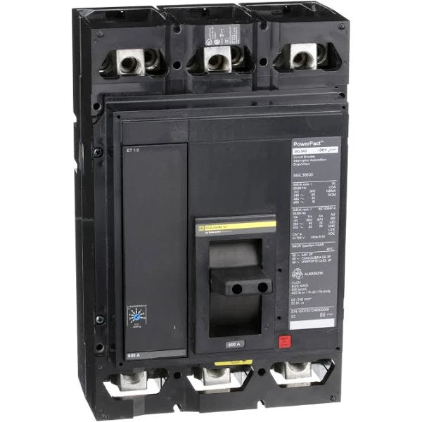 MGL36800 | Schneider Electric Circuit Breaker, PowerPacT M, 800A, 3 Pole, 600VAC, 18kA, Lugs, ET 1.0, 80%
