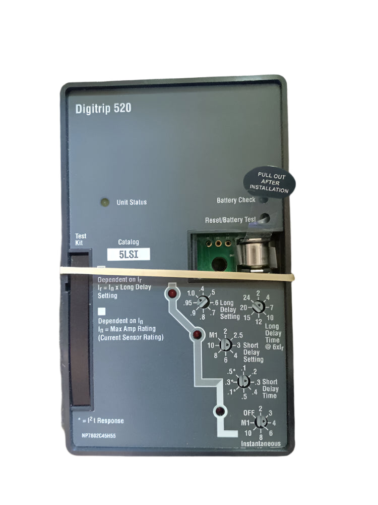 The Eaton Digitrip NP7802C45H55 is a microprocessor-based electronic trip unit from the Digitrip 520 series, designed for use in Eaton's Magnum and Magnum DS low-voltage power circuit breakers. It provides adjustable protection functions, including Long-Time (L), Short-Time (S), and Instantaneous (I) overcurrent protection. The unit features a microprocessor-based design for accurate and reliable circuit protection. It includes LED indicators for trip status and is compatible with Eaton's testing and communication tools. The Digitrip 520 series is known for its robust performance in industrial and commercial power distribution applications.