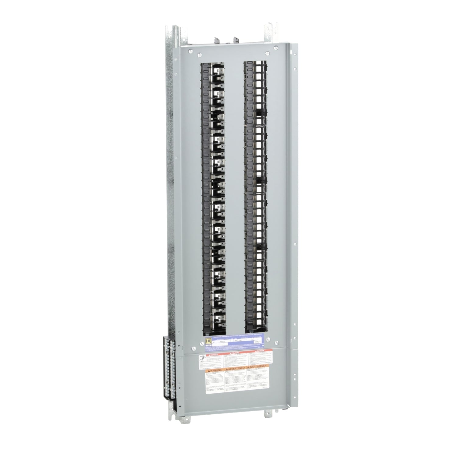 NQ Panelboards are versatile panelboards that feature a wide selection of circuit breakers, accessories, and ready-to-install kits. The NQ472L2C is an NQ Panelboard interior with a main lug, rated at 225A for three-phase systems. It has a maximum voltage rating of 240VAC and 48VDC. This model provides 200% rated neutrals suitable for nonlinear loads and is convertible from main lug to main breaker configurations. The interior supports up to 72 circuits and features a copper bus bar, offering robust electrical distribution and protection.