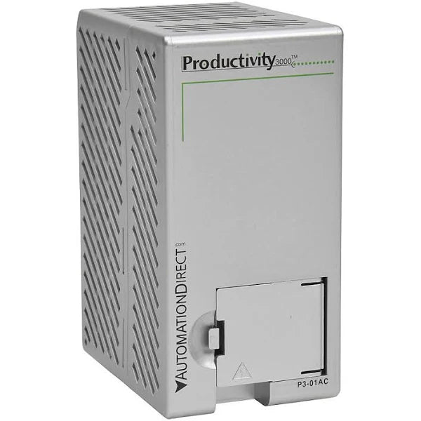 The Automation Direct P3-01AC is the power supply module for the Productivity3000 series. Operating with a 100-240 VAC nominal input, it serves as a crucial component providing the necessary electrical power for the Productivity3000 AC base. One power supply module is required per base, ensuring reliable and stable power distribution within the automation system.