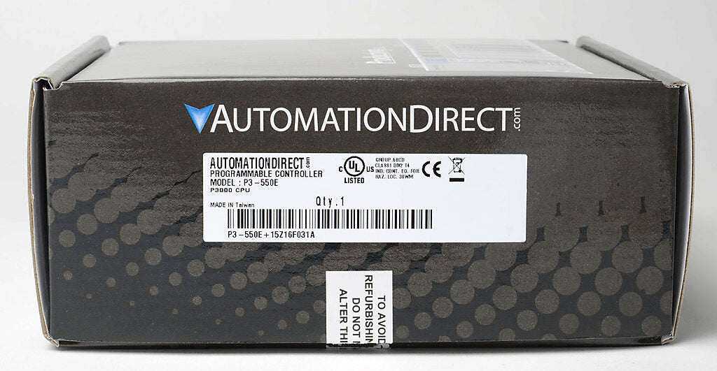 The P3-550E by AutomationDirect is a high-performance CPU module designed for the Productivity3000 series of programmable controllers. It provides reliable processing, advanced communication capabilities, and scalable integration, making it ideal for complex industrial automation systems.