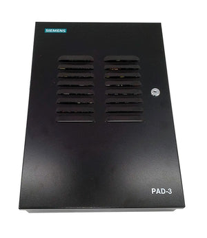 The Siemens PAD-3 is a notification appliance circuit expander with integrated auxiliary power, designed for use with Siemens fire alarm control panels. It delivers 6 amps of regulated 24VDC power that can be distributed across four independent Notification Appliance Circuits (NACs). This unit ensures reliable operation of fire safety notification devices in compliance with building and accessibility requirements.