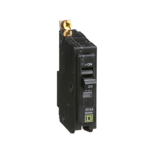 This specific QHB120 circuit breaker is a single-pole unit rated at 20A and operates at voltages of 120/240VAC. It offers a substantial breaking capacity of 65kA, ensuring reliable protection against short circuits and overloads. The bolt-on mounting mechanism simplifies installation and enhances stability.