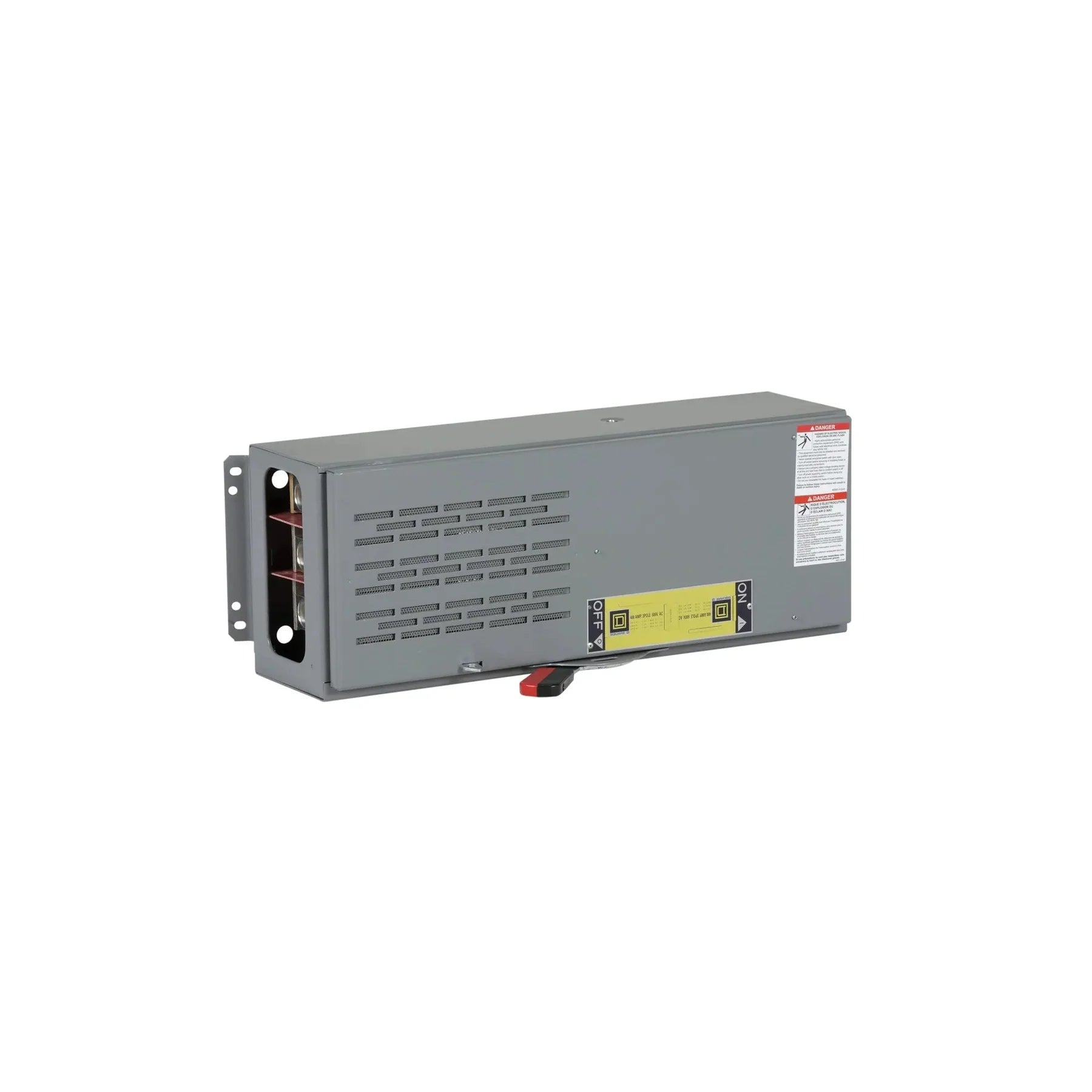 The QMJ365 is a Square D fusible switch from the QMB Series E1-E2, designed for panel mount applications. It belongs to the QMJ type category, featuring a 3-phase, 3-pole configuration with a voltage rating of 600VAC and a current rating of 400A. This switch is rated for a maximum interrupting capacity of 200kA at 480V. It is housed in a NEMA 1 enclosure, suitable for indoor use, and is of the fusible type, accepting class J fuses.