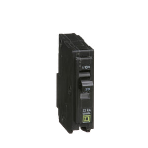 This 1-pole QO circuit breaker is rated at 20A and operates at 120/240VAC. It offers a breaking capacity of 22kA and utilizes plug-in mounting for easy installation. The QO series supports a comprehensive range of factory-installed accessories and features, including shunt trips, auxiliary switches, and alarm switches.