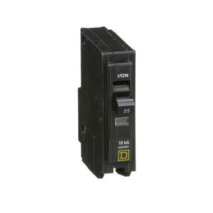 QO125, Square D, QO Series, type QO, 1P, 1PH, 25A, 120/240V, 10kA@240V, Plug-In, with VISI-TRIP indicator, LI - Long-Time and Instantaneous trip functions, Thermal Magnetic molded case circuit breakers suitable for QO Series load centers.