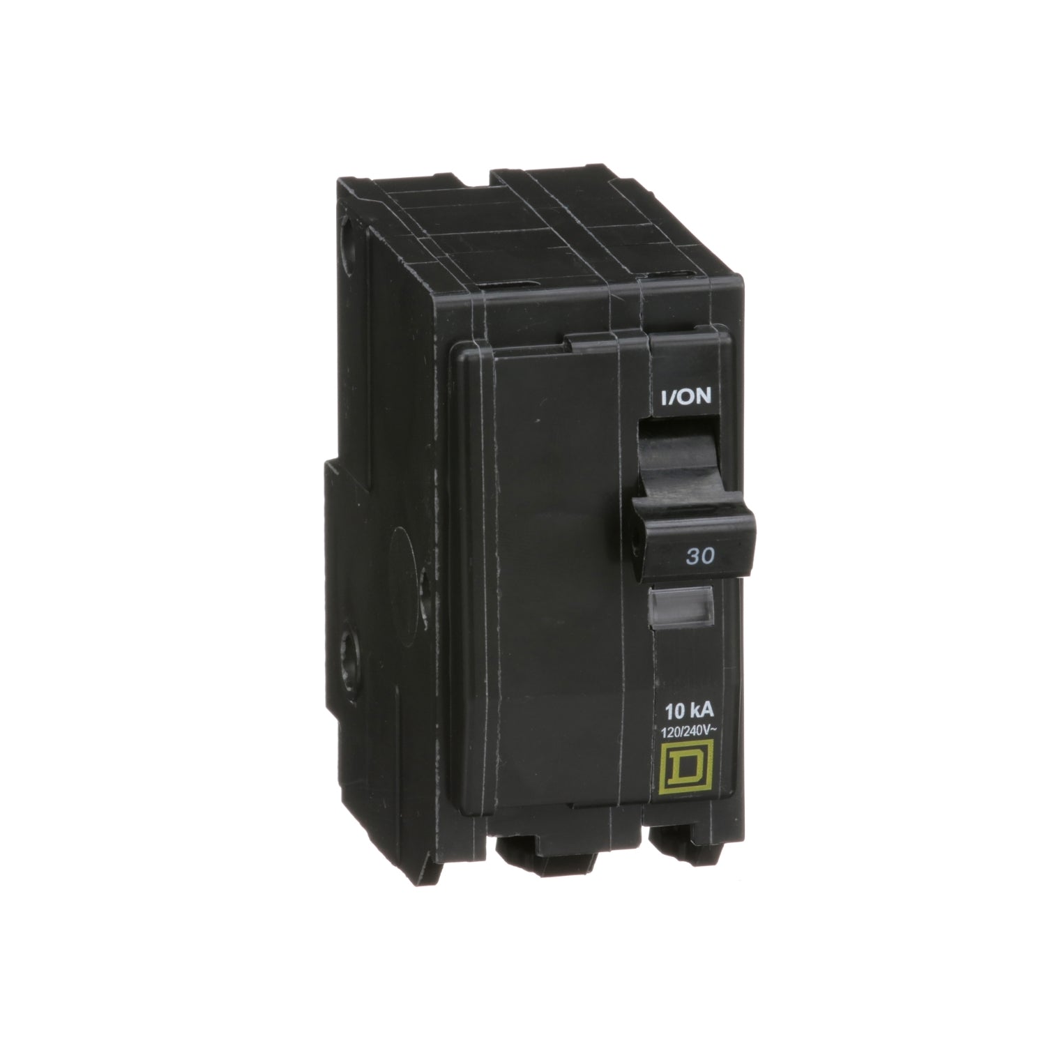 The Schneider Electric QO230 is a 2-pole, 30A mini circuit breaker for 120/240V AC systems. It features thermal magnetic protection, a 10kA interrupt rating, and plug-on mounting for reliable and easy installation.